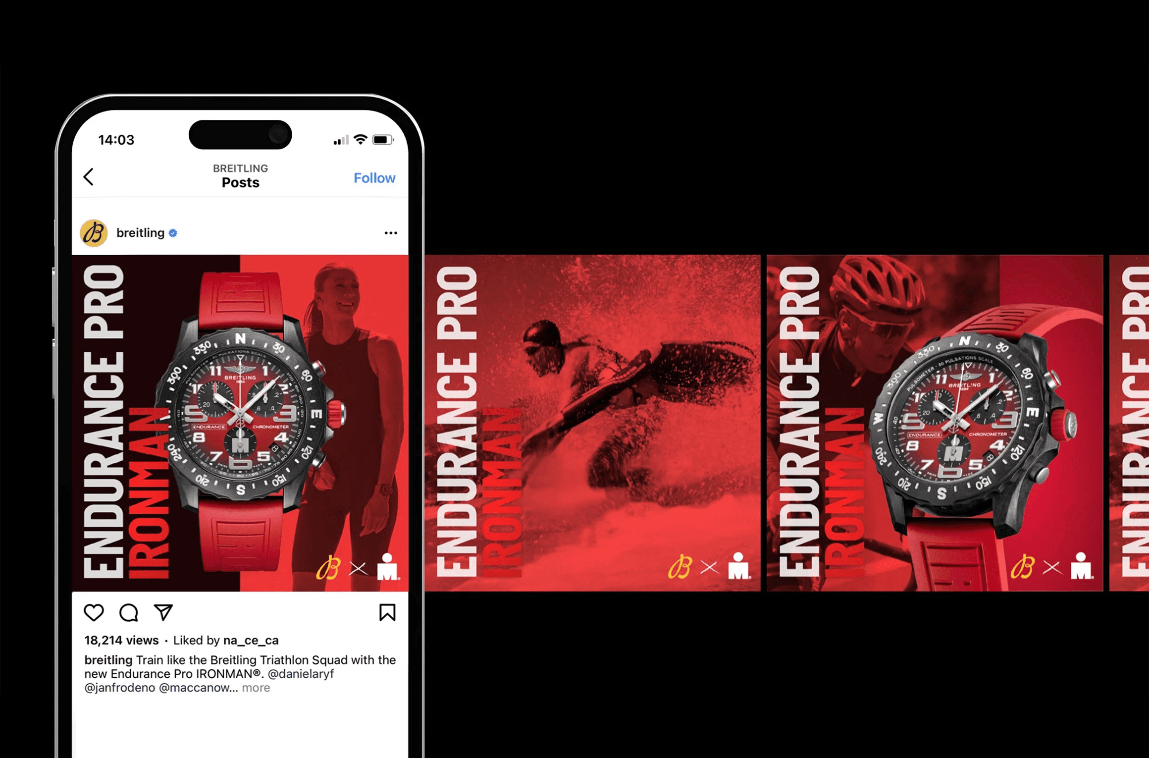The Breitling Endurance Pro in collaboration with IRONMAN campaign champions a squad of the world’s elite triathletes. Built around IRONMAN’s signature red across the strap and dial, the watch’s bold visual language carried through film and social driving impact, energy and audience engagement.